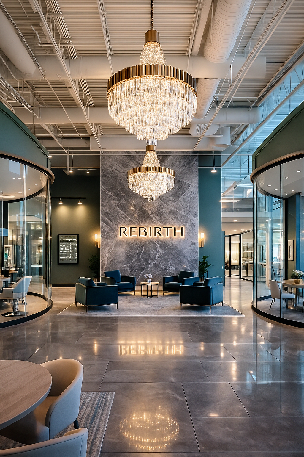 At Rebirth, we don’t just design spaces we craft sanctuaries. Every suite is a fusion of artistry and intention, wrapped in an atmosphere that breathes elegance, clarity, and calm power. This is where innovation meets soul a space to build, to heal, to connect, and to become.